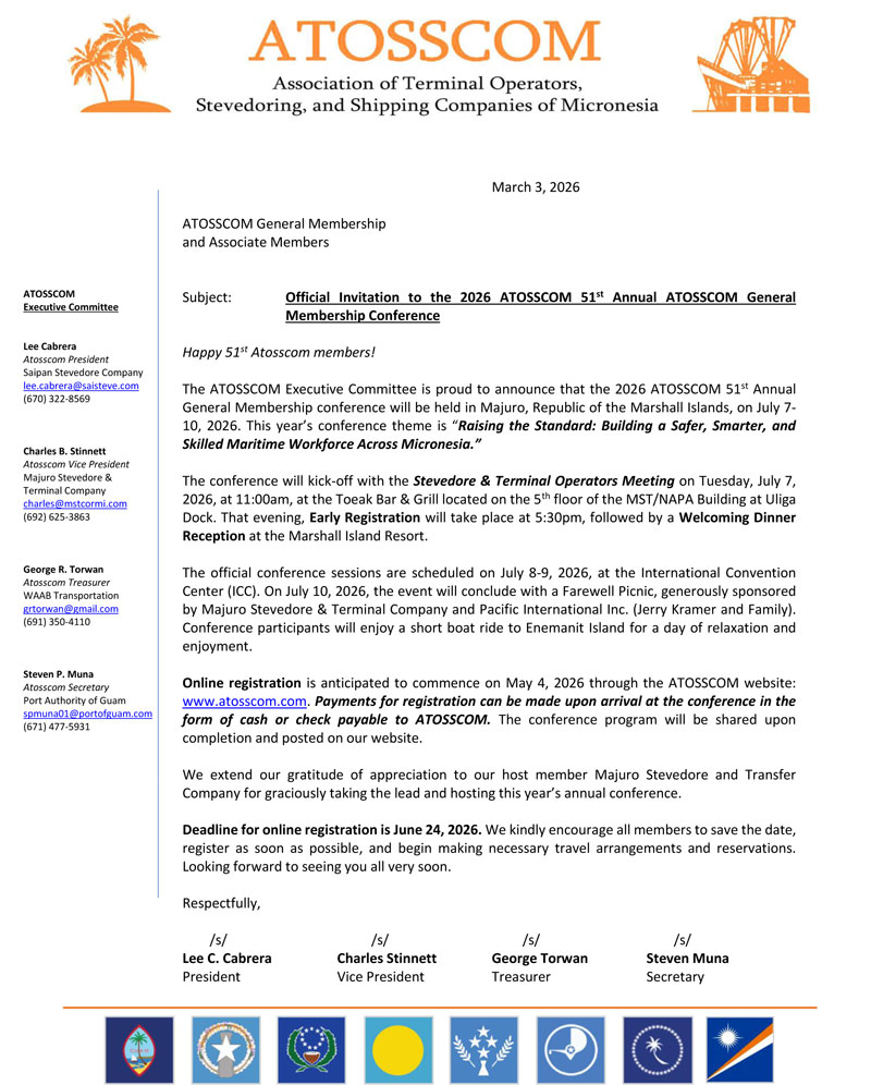 The Annual ATOSSCOM Meeting is in Majuro, Republic of the Marshall Islands.